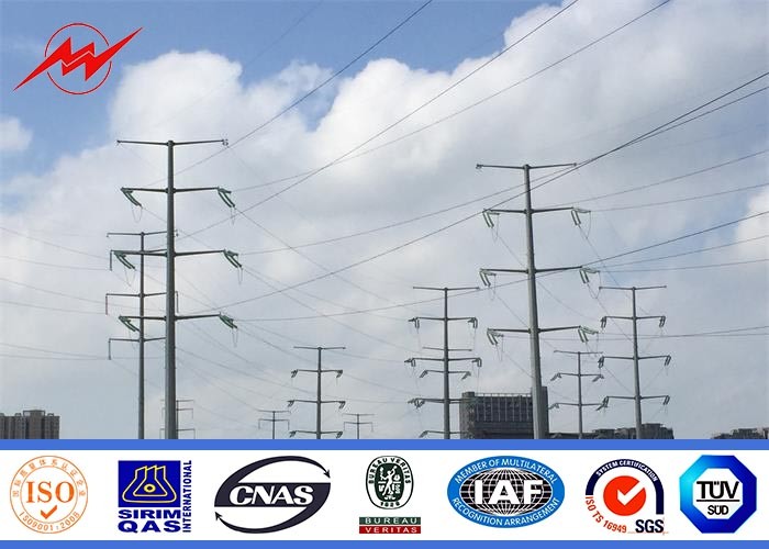 110KV Double Circuit Electrical Power Pole , High Mast Steel Utility Poles 0