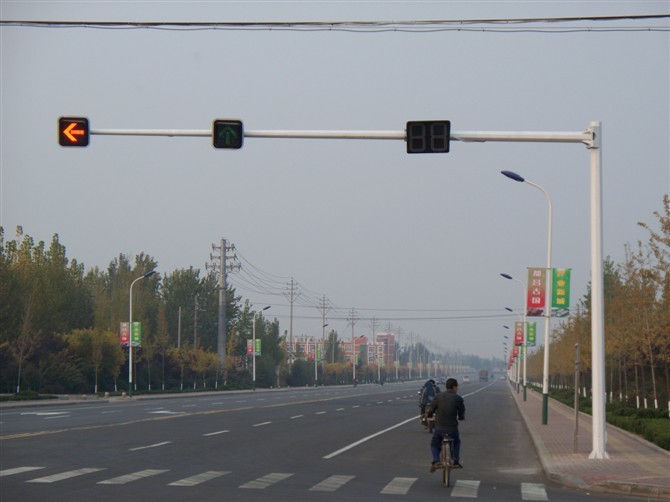 Galvanized Polyester Or Powder Coated Traffic Signal Light Pole Q345 Material 1
