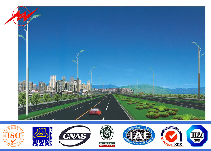 Powder Coating 12m Single Arm Galvanized Steel Pole for Street Lighting
