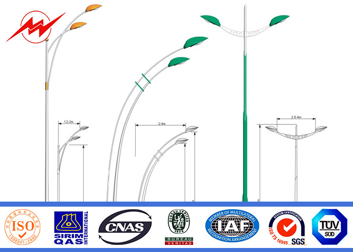 Painting 2.75mm 12m Double Arm Galvanized Steel Pole for Street Lighting
