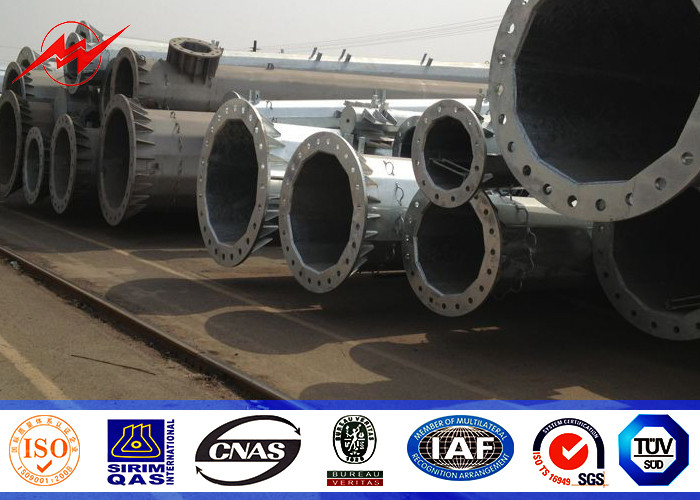 15M 2.5KN 5mm Thickness Steel Tubular Pole With Galvanized Climbing Bolt